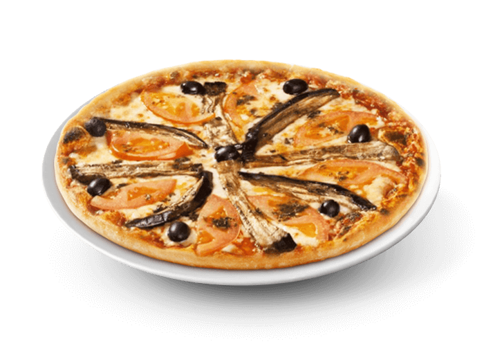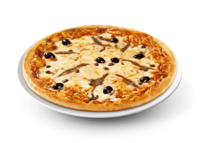 Tomate, mozzarella fior di latte, anchois, câpres, olives.