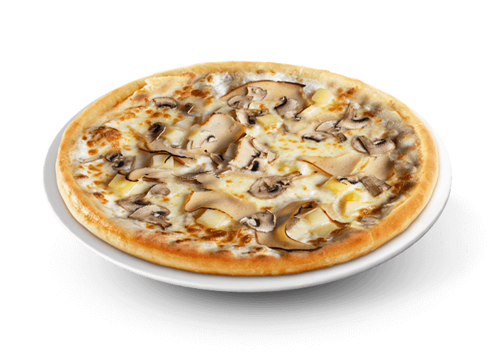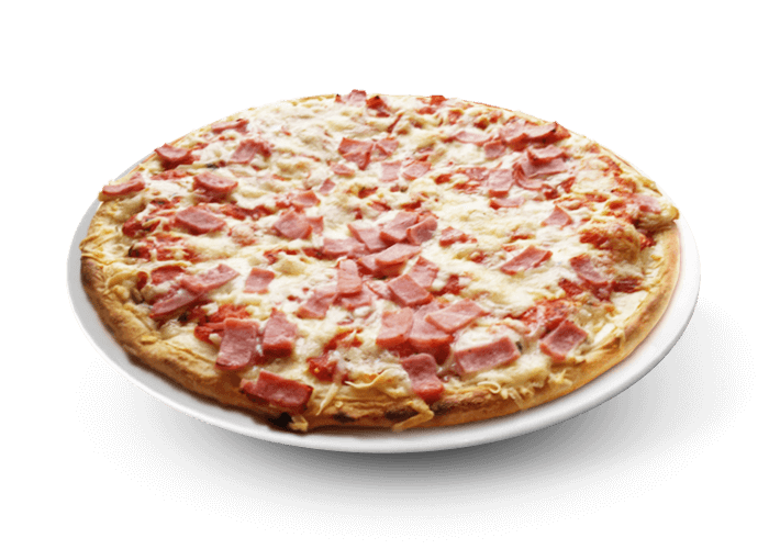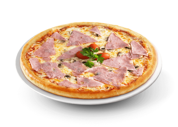 Tomate, mozzarella fior di latte, jambon, champignons.