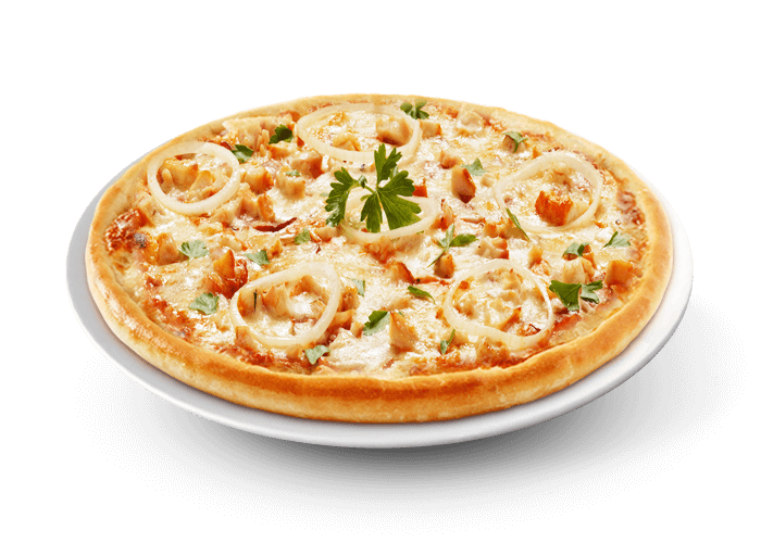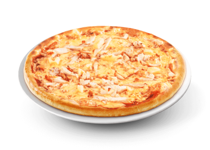 Tomate, mozzarella fior di latte, poulet, oignons rouges, poivrons, ail, persil, piment, huile d'olives.