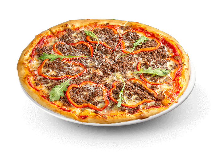 Sauce barbecue, mozzarella fior di latte, boeuf haché, oignons rouges, poivrons, origan.